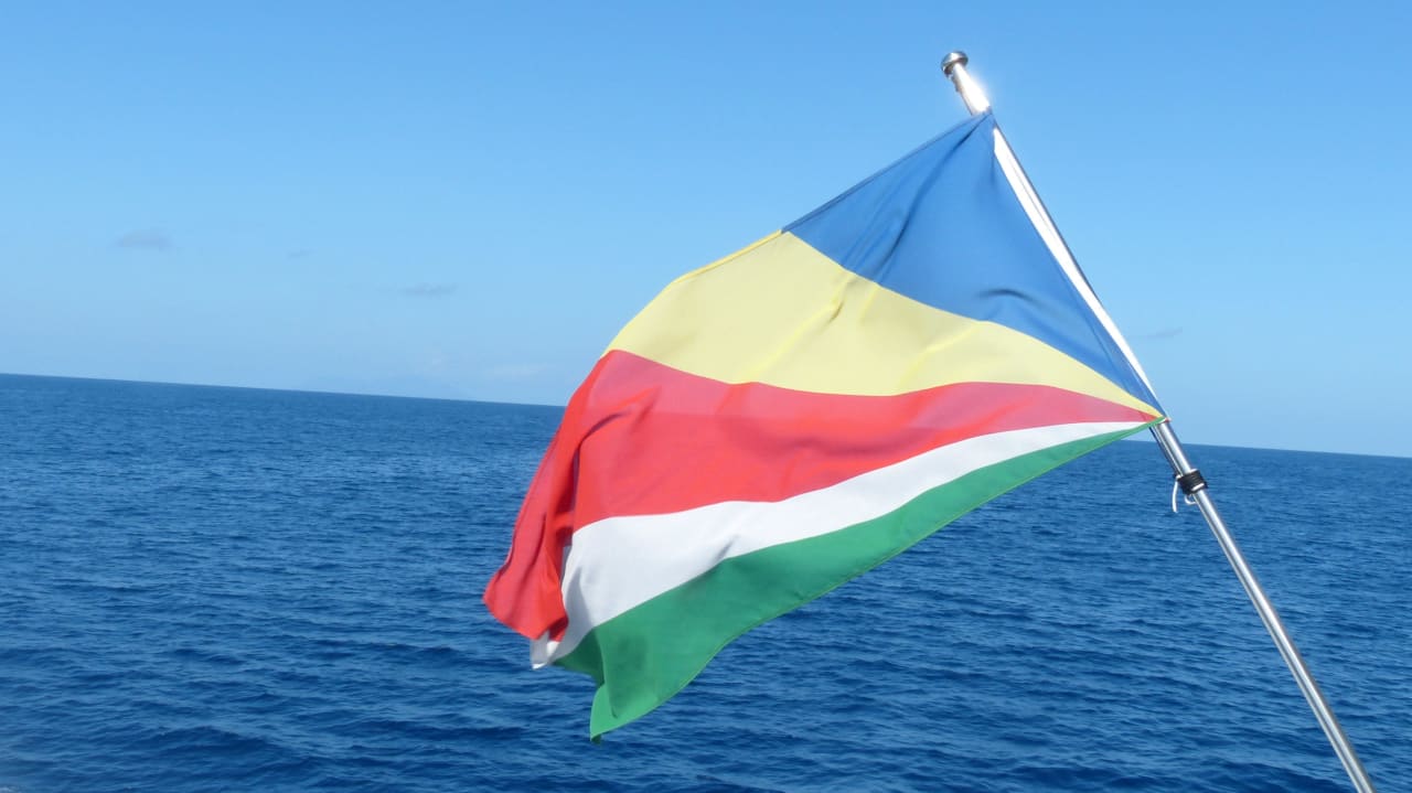 Die flagge die seychellens wurde 1996 eingeführt.